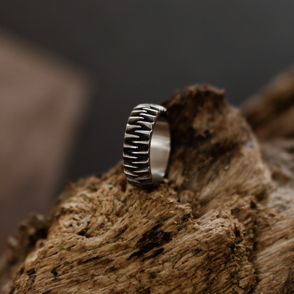 Dragon Teeth Statement Ring in Darkened Silver and Stainless Steel